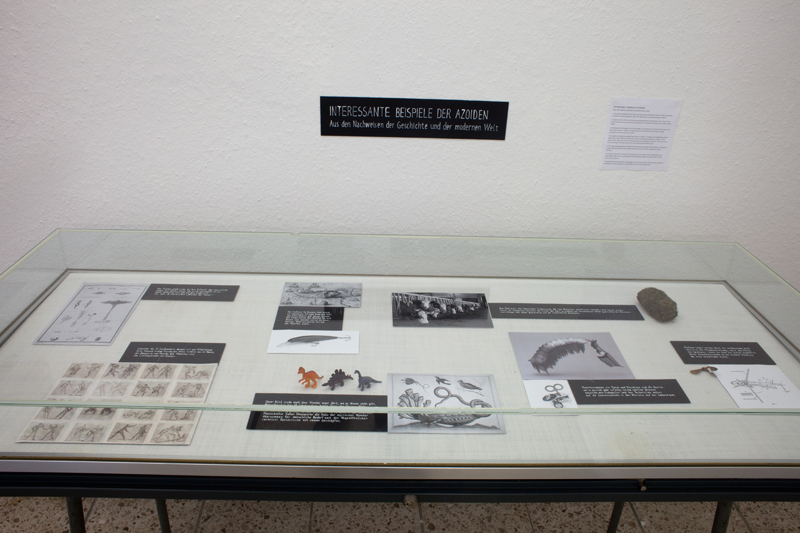 Эти два полюса объединяются в экспозиционном проекте. Азой — музей найденных и выдуманных химер. Это отчет о полевых исследованиях, художественных реконструкциях, догадках и результатах анализа материала."