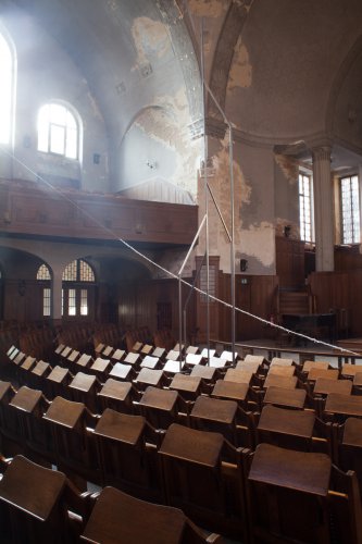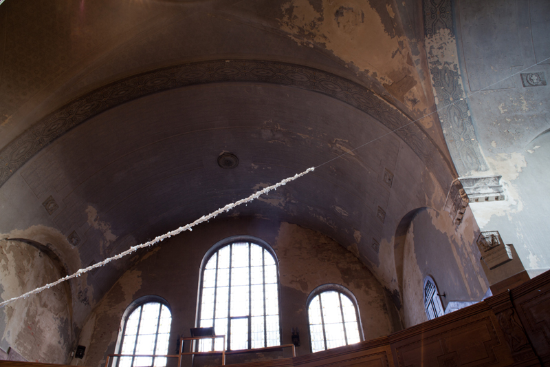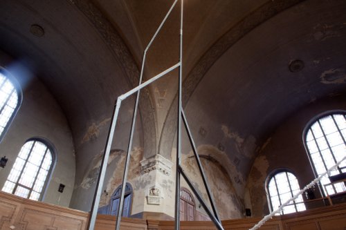 Die ortsspezifische Installation „Don’t Look Back“ der Künstlerin Piper Mavis beschäftigt sich mit Prozessen des Erinnerns und Vergessens. Die zur Decke reichende vier Meter hohe Skulptur fordert die ungewöhnliche Architektur der Kirche heraus und nutzt biblische Allegorie, um universelle Fragen der Erinnerung, Vergangenheitsbewältigung und Zukunft in den Raum zu stellen.